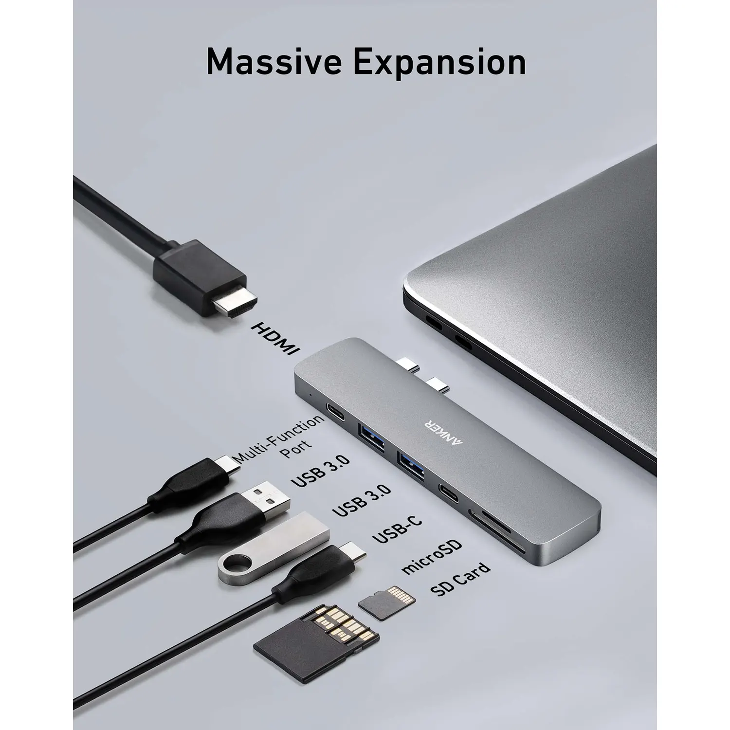 The Anker 547 USB-C Hub is a 7-in-2 hub for MacBooks. It can expand a MacBook’s two USB-C ports into the following: