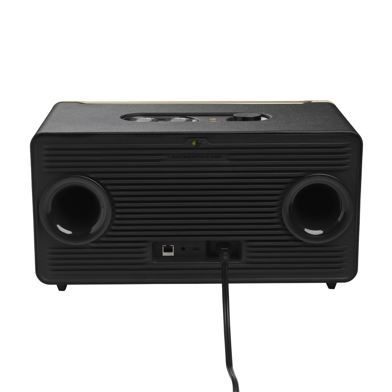 Experience everything from podcasts to internet radio in stunning high definition on your impressive, retro-inspired designed JBL Authentics 500. Experience everything from podcasts to internet radio in stunning high definition. Stream music through AirPlay, Alexa Multi-Room Music (MRM), Chromecast built-in, and Spotify Connect and leave the room or take a call without the music being interrupted. The Wi-Fi connection ensures your speaker gets automatic software and feature updates.