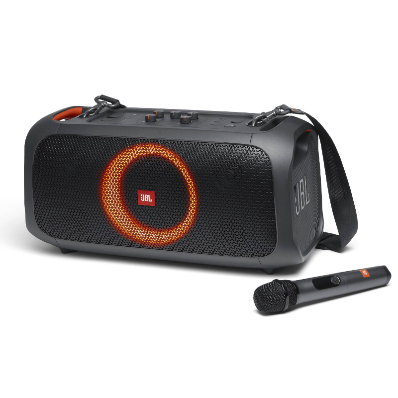 The JBL PartyBox On-The-Go Essential hits that sweet spot between a portable Bluetooth speaker and a full-on PA system. Sure, you can stream music from your smartphone via Bluetooth. But you can also use the On-The-Go’s wireless microphone to sing along with it. All while the speaker dazzles with a synchronized light show.
