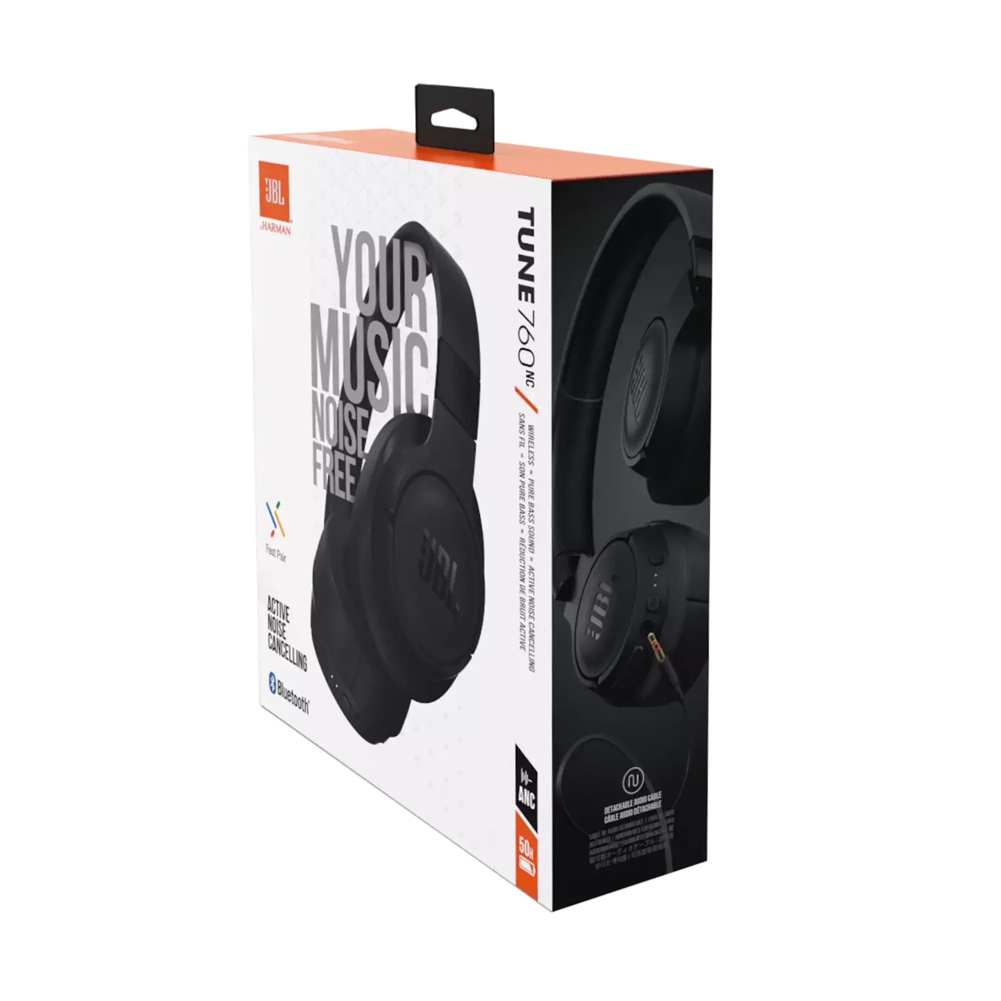 Your music, nothing else matters. Over-ear, super comfortable, powerful, the JBL Tune 760NC keep the promise. The active noise cancelling blocks unnecessary distractions to let you focus on what matters, for up to 35 hours. Not enough? Get an extra 2 hours of juice with only 5 minutes of charge. Lightweight and foldable to fit any adventure, the Tune 760NC can connect with two Bluetooth® devices simultaneously, so that you’ll never miss a call on your phone while watching a video on your tablet. Immediately paired to your Android device with a tap, the JBL Tune 760NC offer hands-free management of calls and your device’s voice-assistant. To endlessly extend the fun, just plug the JBL Tune 760NC with the included detachable cable. Choose the color that matches your mood and have fun!