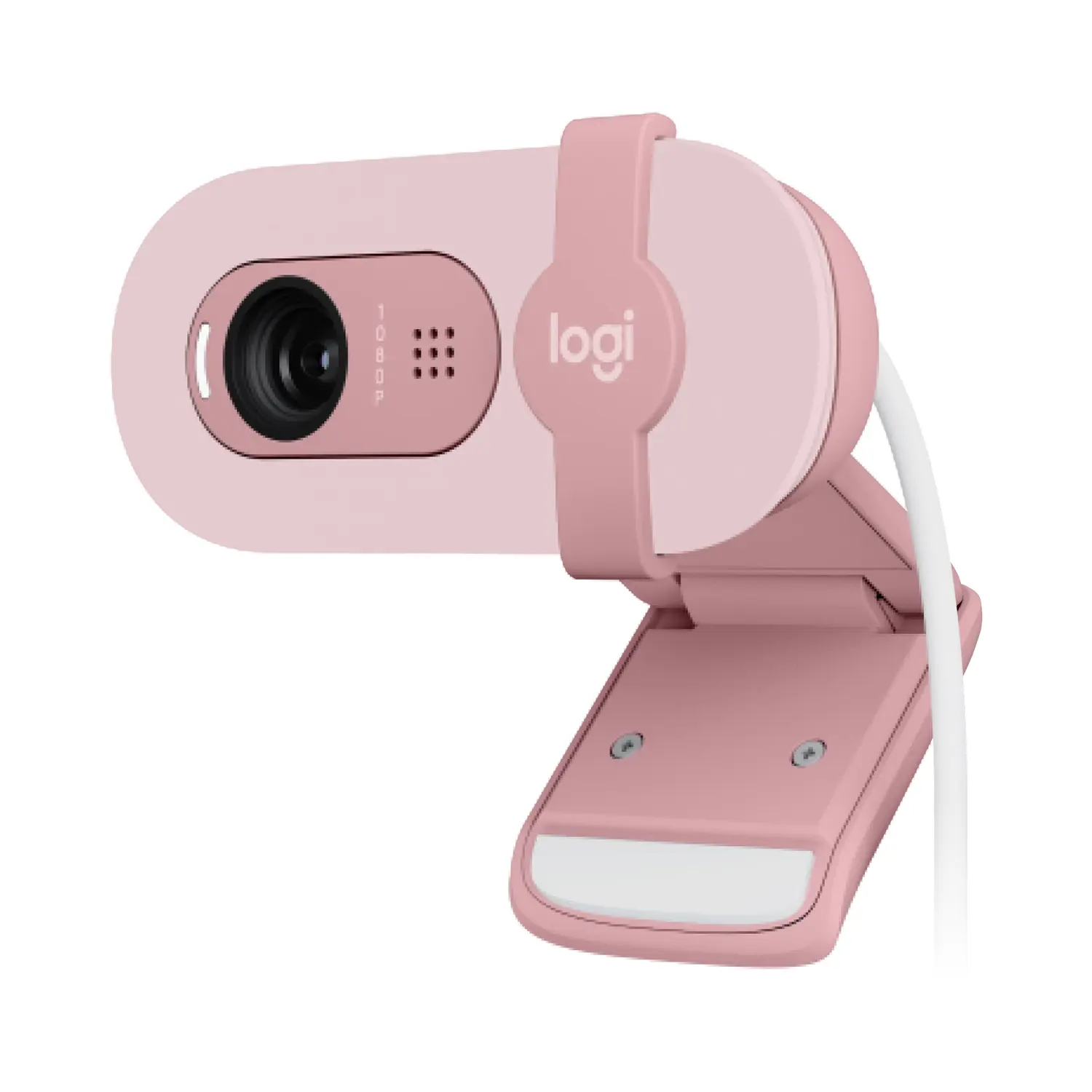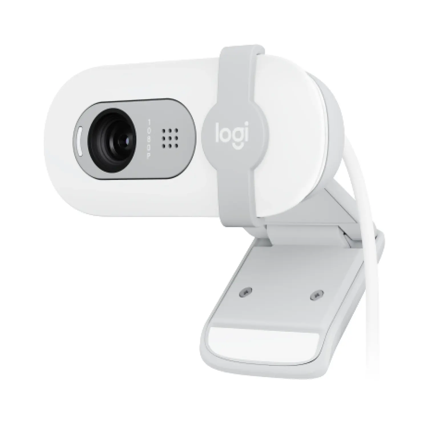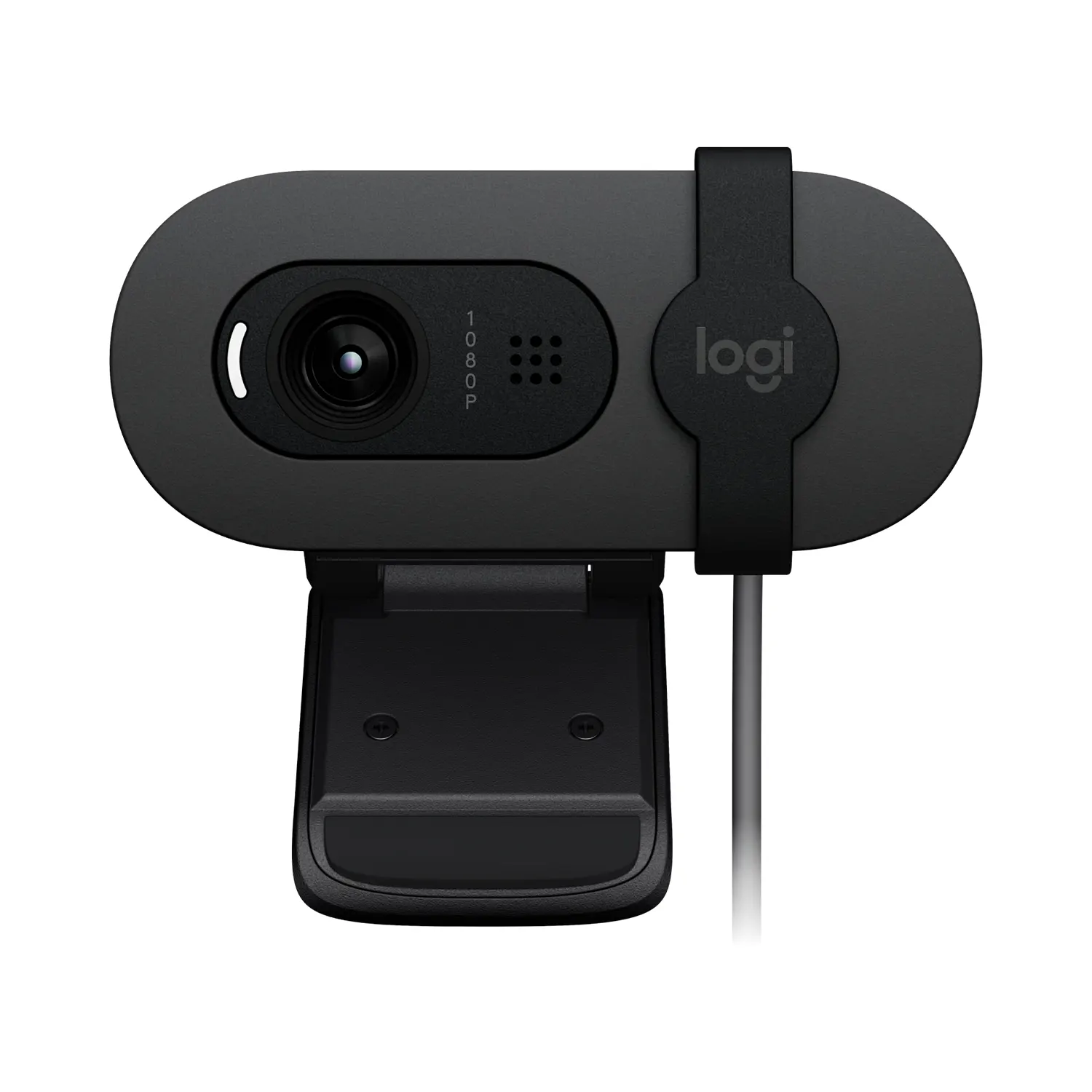 The Logitech Brio 100 is a webcam designed for work-from-home use. It has a 1080p resolution, a 58° diagonal field of view, and a fixed-focus plastic lens. It also has a built-in mic, an integrated privacy shutter, and an auto-light balance feature.