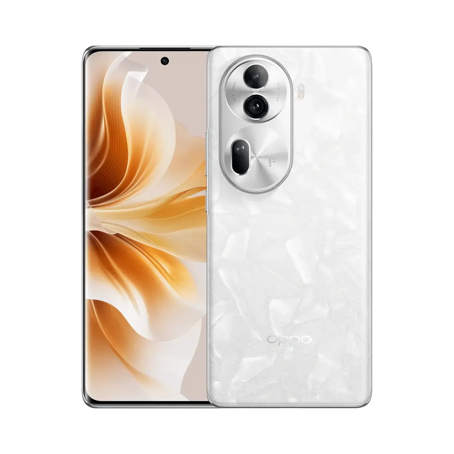 The Oppo Reno 11 pro is a smartphone with a 6.7 in AMOLED display, 120 Hz refresh rate, and 1080 x 2412 pixel resolution. It has a 50 MP main camera, 32 MP front camera, and Asahi Dragontrail Glass protection. The phone also has up to 12 GB of RAM and 256 GB of internal storage.
