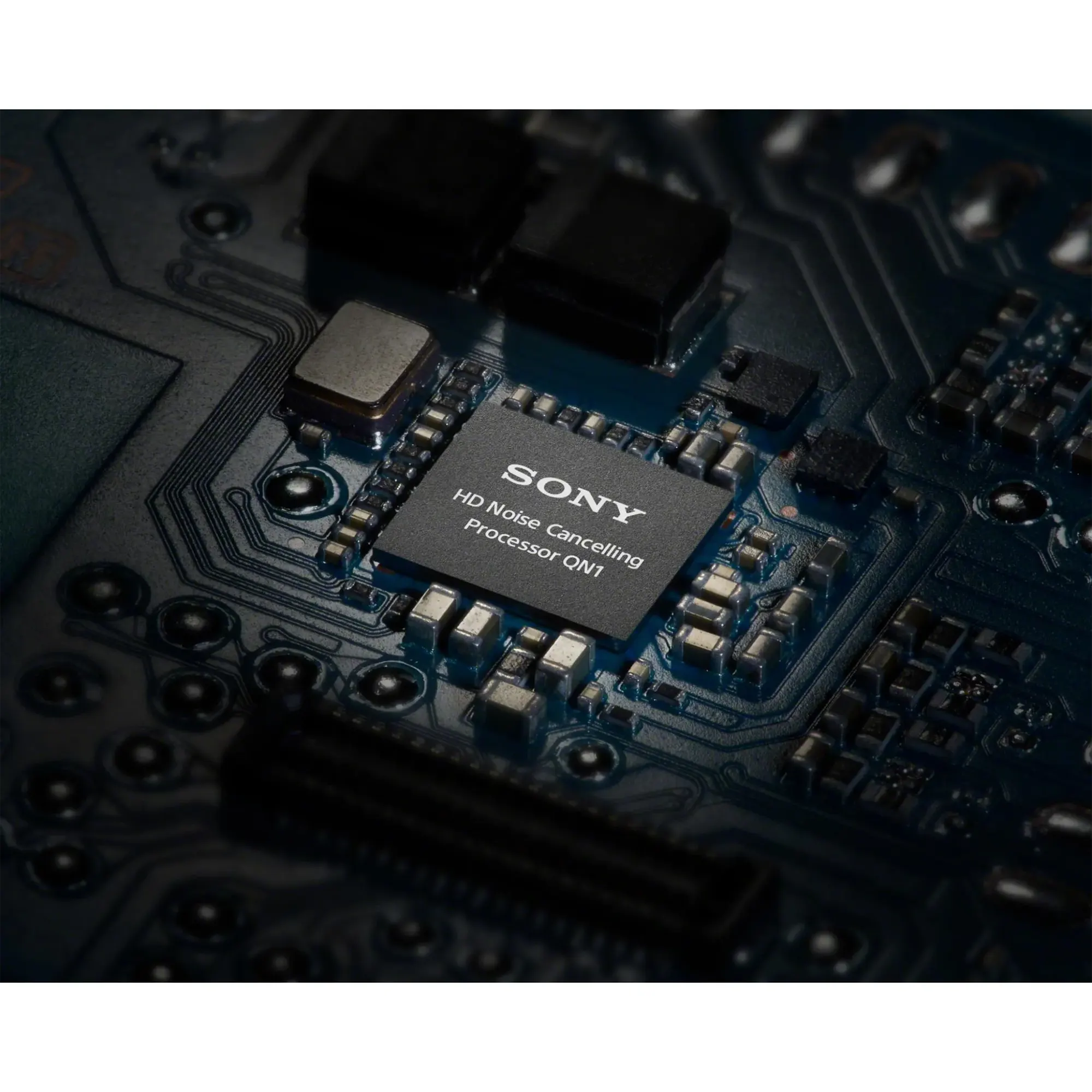 Dual noise sensor technology, featuring two microphones on each earcup, captures ambient noise and passes the data to the HD Noise Cancelling Processor QN1. Using a new algorithm, the HD Noise Cancelling Processor QN1 then applies noise cancelling processing in real time to a range of acoustic environments. Working together with a new Bluetooth® Audio SoC (System on Chip), it senses and adjusts to music and noise signals, as well as acoustic characteristics between the driver unit and ears, at over 700 times per second.