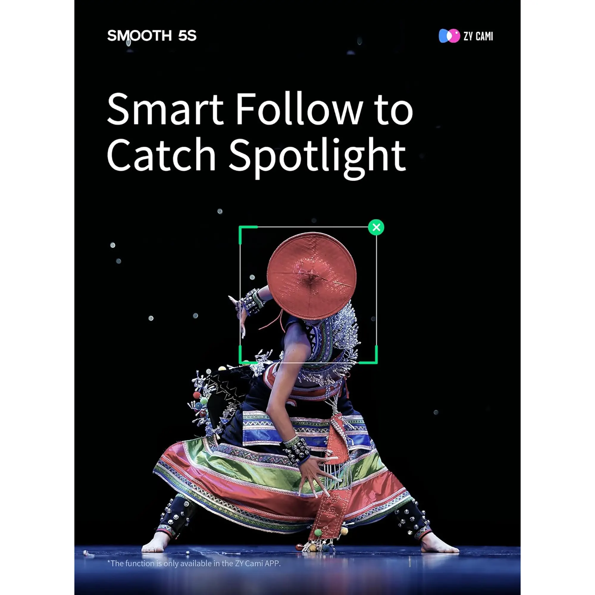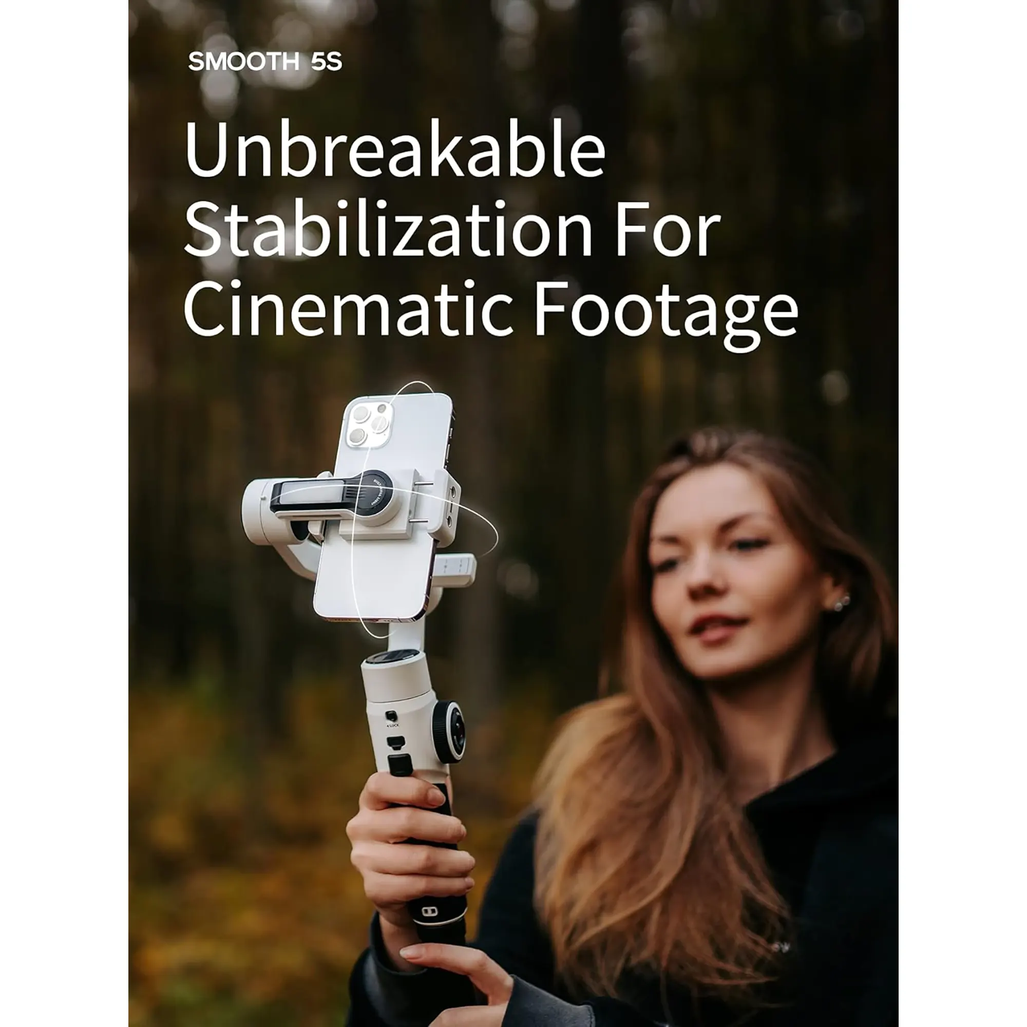 Smooth 5S stands out with its professional structure of 3 orthogonal pivot axes that bring you more possibilities with greater vision. The wider space between each axis facilitates extreme-angle shootings, allowing you to make cinematic shots without limits.