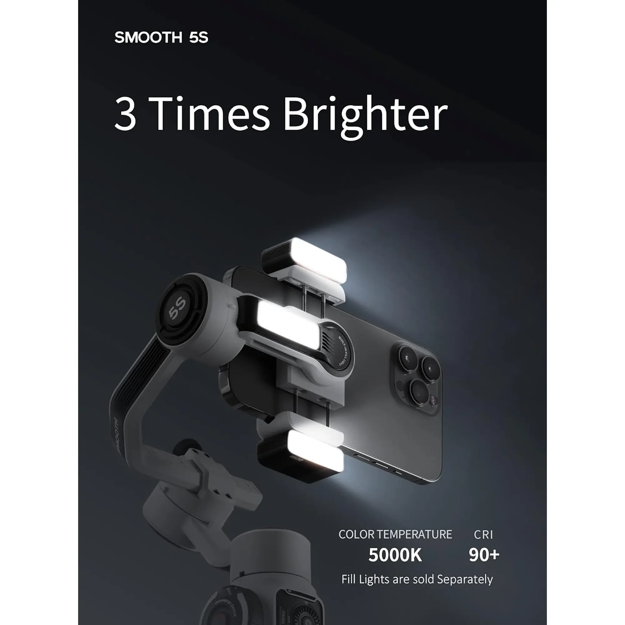 A new fill light with the 650 lux peak illuminance is added to the tilt axis, making Smooth 5S an all rounder for better telling your story. Two magnetic fill lights plus the built-in one give you an unbeatable lighting effect that enables a peak illuminance of 2040 lux.